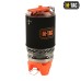 Туристична кулінарна система M-Tac для приготування їжі. Ємність для приготування працює за радіаторним принципом розподілу тепла, що зменшує витрати газу і час нагрівання. Безпосереднім плюсом є те, що всі аксесуари до пальника можна скласти в казанок. Пальник обладнаний регулятором газу і п'єзопідпалом.