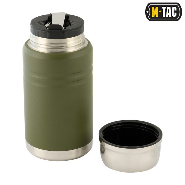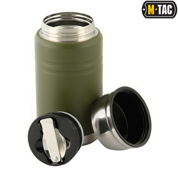 M-Tac термос незамінний в місті або в поході. Він підходить не тільки для напоїв, але і для супів і бульйонів. Термос зручно брати з собою, він не протікає і не б'ється. Матеріал термоса - сталь 201 Stainless Steel, колба також сталева. Шар вакууму між стінками надійно ізолює вміст та зберігає температуру. Широке горло дозволяє зручно наливати напої всередину. У верхньому клапані є складана сталева ложка. Кришку можна використовувати як стаканчик.